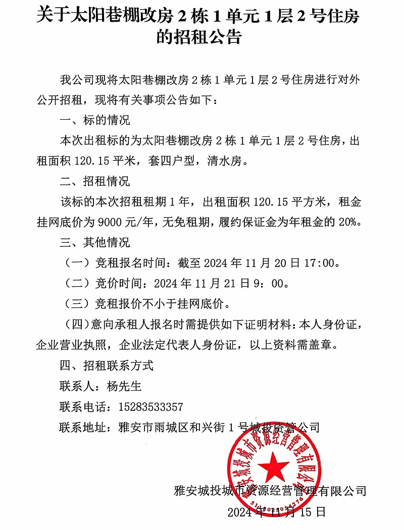 關(guān)于太陽巷棚改房2棟1單元1層2號住房的招租公告
