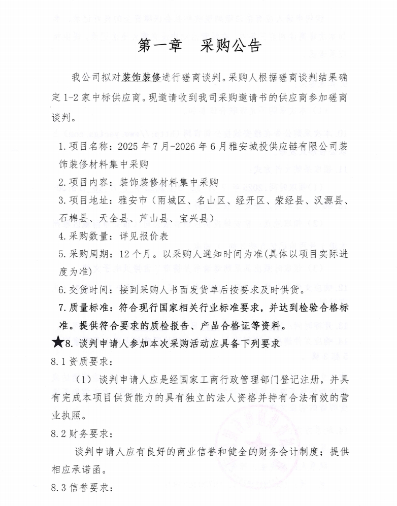 裝飾裝修采購公告